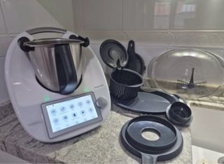 Robot de cocina multifunción Thermomix tm6 No pesa bien PRECIO NO NEGOCIABLE No doy accesorios solo lo que se ve en las fotos Tiene desgastes y un trozo de plástico roto en partes de las tapas se ve en las fotos estado de funcionamiento perfecto Tiene el asa central suelto Año 2020