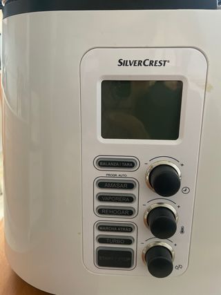 Robot de cocina multifunción SilverCrest en color blanco. PVP 399€ Robot Lidl PVP 399€. Pantalla Táctil. Conexión Wifi a recetas guiadas. Pesa, mezcla, cocina, amasa, tritura, rehoga. Accesorio para cocinar al vapor. Está casi nueva, usada menos de 10 veces