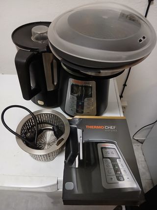Vendo Robot de cocina por no usar. Se ha usado unas 10 veces únicamente para hacer purés. muLTIFUNCIÓN: 31 FUNCIONES. Todo lo que necesitas en tu cocina en un solo robot de cocina. Pulveriza, tritura, ralla, monta, amasa, hierve, sofríe, cocina al vapor, licua, cocción lenta, fermenta, pesa, cocina al baño maría, etc. También cuenta con funciones específicas como: función Yogurtera, función Pulse, Auto-limpieza, función Mariposa, función Mantener Caliente y la función DIY, un botón extra para ajustar tu propia función y acceder a ella con un solo click INCLUYE RECETARIO. Robot de cocina con recetario de 200 rec
