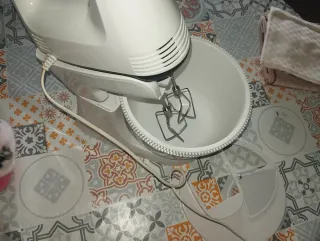 Robot de cocina blanco con bol. - Incluye varillas. - Diseño moderno.
