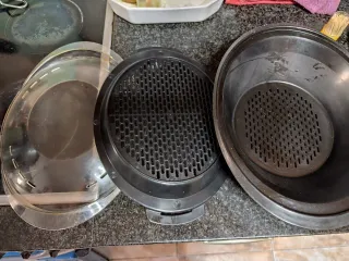 Conjunto de accesorios para robot de cocina. Varios ascesorios de robot de cocina no recuerdo q la marca que pertenecen de ahi el precio , pieza de cada una 3€ ,y la vaporeta 5€ ,tambien te puedo hacer lote y hablamos precios. Segun la pieza me hablais y os edito un anuncio ,no comprar en este.