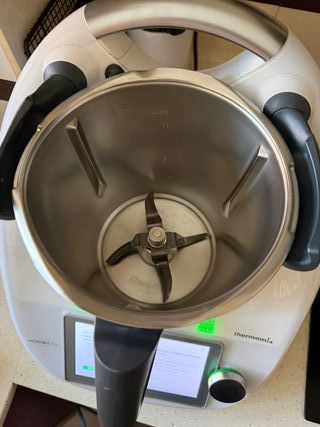 Robot de cocina Thermomix en buen estado. - Jarra de acero inoxidable. - Panel de control con pantalla. - Botón de encendido/apagado. - Varios programas y funciones.