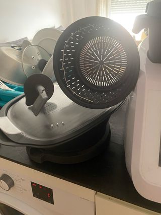 Robot de cocina multicooker. Se puede hacer muchas recetas con él. Funciona perfectamente, la hemos usado hasta ahora y funciona a la perfección. Viene con algunos accesorios y libro de recetas. La vendemos porque nos han regalado una termomix y nos falta espacio.