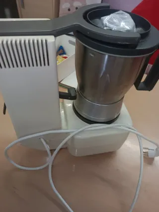 Robot de cocina Taurus Mycook One usado dos veces, lo compró mi hermano en Octubre de 2023 y al final come todos los días fuera, con todos los acccesorios originales: (Vaso dosificador, tapa jarra, junta tapa, cestillo-colador, cuchillas de acero inox, jarra 2L, soporte jarra con brida de fijacion, unidad central, mango para cestillo, paleta mezcladora, bandeja vapor, tapa, bandeja plastico, junta vaporera) Funciona perfectamente, viene con el libro oficial para aprender a usar la mycook y con muchísimas recetas, es muy intuitiva y facil de usar, HACE DE TODO, unidad central de color blanco.