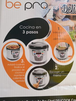 Robot de cocina, 45 programas de cocción, programable hasta 24 horas, bol con capacidad de 5 litros, hasta 4 personas. Inicio programable y función de mantener en caliente, hasta 24 horas; tecnología de micropresión con válvula regulable para un resultado óptimo y mayor rapidez. Accesorios: cesta vapor, espátula, vaso medidor y libro de recetas fácil de abrir con un solo clic podrá cocinar con la tapa abierta y añadir ingredientes o salsas cuando lo necesite. Dimensiones de producto compactas para poder almacenar en tu cocina 32.5 x 28.2 x 44.5 cm Sólo se ha usado 3 veces. La vendo porque me han regalado otra olla programable.