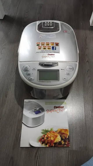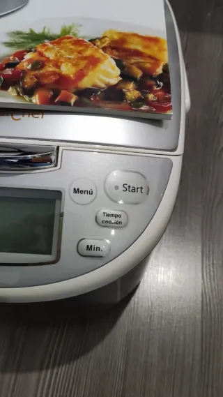 Robot de cocina MultiCooker Master Chef. - Panel de control con pantalla. - Botones: Menú, Start, Tiempo cocción, Min. - Libro de recetas - Funciona perfectamente, usado en 4-5 ocasiones para que la comida estuviera caliente al llegar a casa