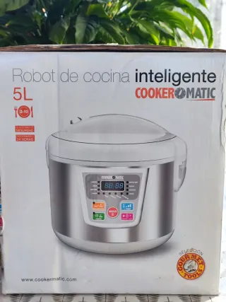 Robot de cocina inteligente Cookermatic de 5 litros. - Capacidad de 5L. - 12 sistemas de seguridad. - Programable 24 horas. - Incluye manual de instrucciones.