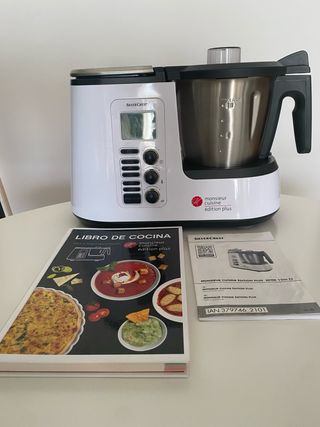 Robot de cocina Chef Plus Induction en perfecto estado. Incluye recetario. - Modelo Chef Plus Induction. - Incluye libro de recetas Recetario. - Panel de control con pantalla digital. - Botones de función en español. - Incluye accesorios: moldes, bolsa de transporte y bolsa de reciclaje.