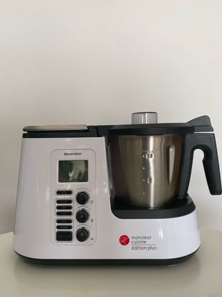 Se vende robot de cocina Monsieur Cuisine Edition Plus de Silvercrest, en buen estado. Incluye accesorio de vaporera. - Robot de cocina multifunción. - Marca Silvercrest. - Modelo Monsieur Cuisine Edition Plus. - Incluye accesorio de vaporera.