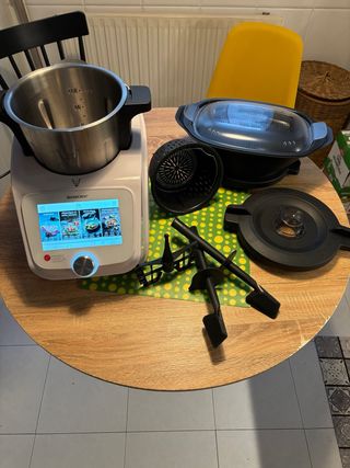 03-U599900 Buen estado. Incluye los accesorios mostrados en las fotos. Robot de cocina multifuncional diseñado para preparar multitud de recetas con guía paso a paso y control intuitivo, combinando funciones de preparación, cocción y pesaje en un solo aparato. 3 años de garantía. Disponible sólo para envío mediante wallapop o compra directa en nuestra web realcash. es. Enviamos a toda España excepto Canarias, Ceuta y Melilla.