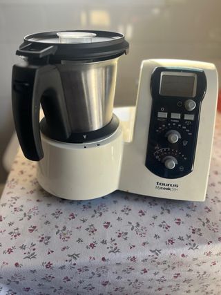 Robot de cocina de Taurus. EN MUY BUEN ESTADO Conexión Wi-Fi integrada APP Mycook integrada en el robot de cocina Más de 20.000 recetas gratis en constante crecimiento en el Club Mycook 2 modos de cocción: manual y guiada Interfaz intuitiva y fácil de usar Pantalla táctil de 7 pulgadas Jarra de acero inoxidable de 2L Cuchillas de acero inoxidable Inducción patentada hasta 140ºC Multifunción 25 funciones culinarias (4 funciones automáticas) Balanza integrada con resolución de 5 g Cestillo-colador, paleta mezcladora, espátula, vaporera de 4.5L (2 niveles) y vaso medidor