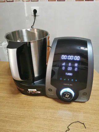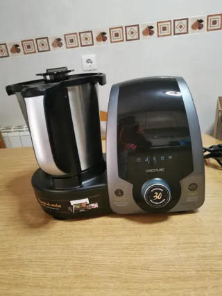 Vendo robot de cocina Cecotec Mambo 10090, en perfecto estado y con todos sus accesorios (incluido recetario). Sin apenas uso. ✅ 30 funciones: cocina, tritura, emulsiona, amasa, bate, sofríe, cocina al vapor y mucho más. ✅ Jarra de acero inoxidable + Jarra cerámica Habana, perfecta para repostería y recetas delicadas. ✅ Báscula incorporada y control preciso de temperatura, tiempo y potencia. ✅ Conectividad WiFi y app móvil para acceder a recetas y cocinar fácilmente. ✅ Incluye cestillo de vapor, mariposa, cuchara MamboMix y recetario.