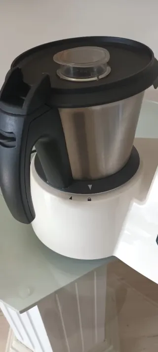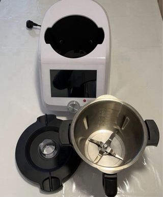 Robot de cocina Thermomix de la marca Vorwerk. Modelo moderno con pantalla táctil. Está en muy buen estado, pero el peso no está regulado y el asa trasera está suelta. Por lo demás está como nueva. - Pantalla táctil a color. - Diseño blanco y plateado.