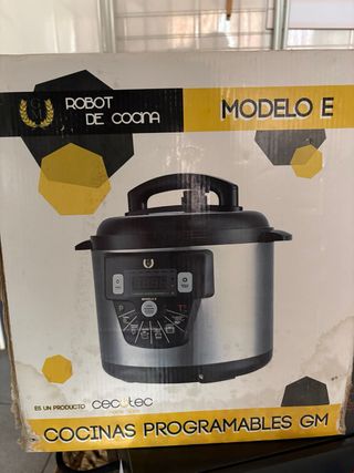Robot de cocina de la marca Cook Maker en buen estado. Funciona perfectamente. - Panel de control digital con programas preestablecidos. - Función Mantener Calor. - Función Descongelar. - Botón Cocinar. - Botón Cancelar. - Botón Programar. - Botones de ajuste de presión y selección de idioma.