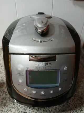 Robot de cocina Chef Plus con tecnología de inducción. Diseñado para facilitar la preparación de tus comidas. - Panel de control con pantalla. - Funciones de calentar, recalentar y aplazar. - Ajuste de temperatura y tiempo. - Indicadores de cerrado y abierto para la tapa. - Se ha usado muy muy poco.