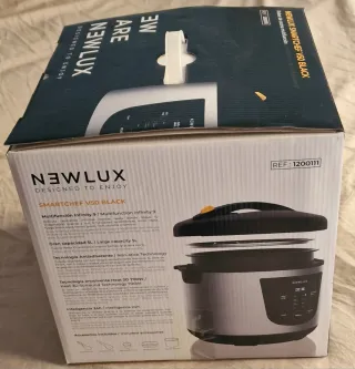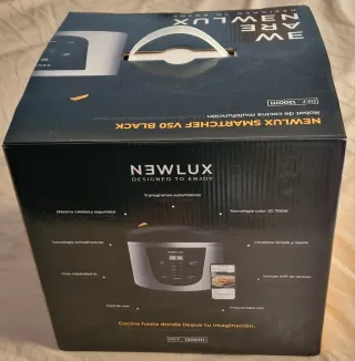 Robot de cocina multifunción Newlux Smartchef V50 en color negro. - 9 programas automáticos. - Tecnología calor 3D 700W. - Gran capacidad 5L. - Tecnología antiadherente. - Incluye APP de recetas. - Programable 24h.