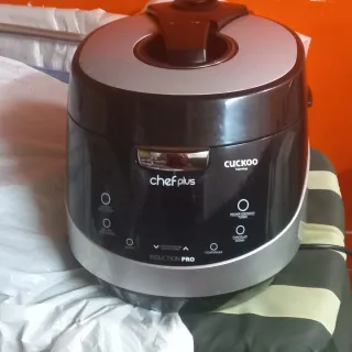 Robot de cocina multifunción de la marca Koolen. Ideal para preparar una gran variedad de platos. - En un lateral se aprecia un golpe/abollón, pero no afecta para nada al funcionamiento. De ahí el precio. - El enchufe es del Reino Unido, por lo que habría que comprar un adaptador, o lo incluyo por 5€ si me lo pides antes de hacer la compra. - Panel de control digital con programas preestablecidos. - Función de mantenimiento de calor. - Diseño moderno y compacto.