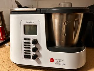 Utilizado literalmente dos veces. Robot de cocina Silvercrest Monsieur Cuisine edición plus. - Color blanco y negro. - Jarra de acero inoxidable. - Pantalla digital. Tengo la caja