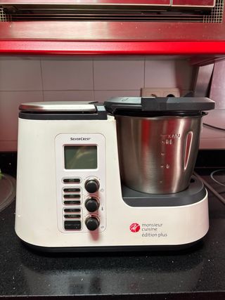 Robot de Cocina SilverCrest Monsieur Cuisine Edition Plus Vendo robot de cocina multifuncional SilverCrest Monsieur Cuisine Edition Plus en perfecto estado. En su caja. Usado dos veces, los accesorios ni se han estrenado. Ideal para preparar todo tipo de recetas fácilmente gracias a sus múltiples funciones, entre ellas: Cocina, mezcla, bate, pica, amasa y tritura. Incluye 3 programas automáticos (amasar, cocinar al vapor y sofreír). Potente motor de 1.000 W para cocinar y 800 W para mezclar. Velocidades ajustables de 120 a 5.200 rpm con giro inverso. Báscula integrada y jarra de acero inoxidable. Ideal dietas o potitos infant