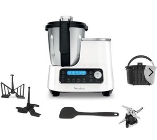 Nuevo a estrenar. Robot de cocina Moulinex Clickchef en color blanco. Incluye varios accesorios para facilitar la preparación de tus comidas. 1400W. 3,6l. 5 programas auto. 12 velocidades. 32 funciones: corta, pica, tritura, sofríe, muele, pulveriza, prepara crema, licúa, recalienta, bate, mezcla, cocina, guisa, pesa, cuece a baja temperatura, remueve, amasa, cocina al vapor, fermenta, conserva, hierve, confita cocina con precisión, monta, emulsiona, escalfa, pica hielo, estofa, derrite. prepara sorbetes, mantequilla y función turbo