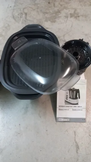 Robot de cocina en perfecto Estado, se ha utilizado muy pocas veces, dispone de todos los accesorios, bandeja de cocción al vapor, removedoras, paletas, cesto cocion, libro recetas y manual usuario. se vende por no utilizar