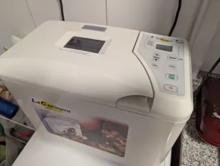 Panificadora La Cocinera, en buen estado. - Modelo con funciones de precalentado, amasado, fermentado, horneado y mantenimiento. - Incluye selector de masa y punto, con botones de inicio/pausa y fin. - Dispone de luz y control de tiempo.