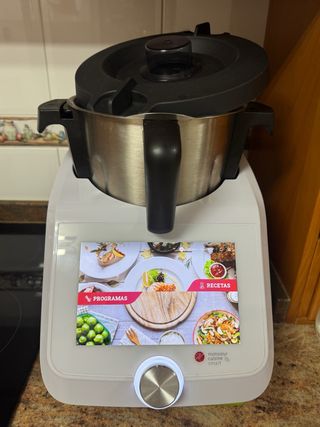 LO ESTRENA UD., SIN NINGUN USO‼️ Multifunción, 9 Programas Automáticos, Pantalla Táctil, 12 velocidades, Apta para Lavavajillas, Fácil Limpieza 1000W. Sistema de recetas online: el robot de cocina incorpora un sistema WiFi con 200 recetas paso a paso para guiar tu cocinado. •9 Programas automáticos de cocinado y 12 velocidades: gracias a su intuitiva interfaz, cocinar será una tarea sencilla. Además, cuenta con función inversa para su cuchilla de forma que se evita dañar alimentos delicados en elaboraciones a fuego lento.