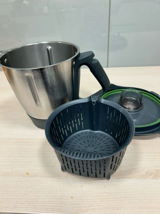 ¿Quieres un robot tipo “todo en uno” sin pagar lo que cuesta una Thermomix??Vendo robot de cocina Masterpro de 3,5L de capacidad y 1300W de potencia, ideal para preparar comidas para toda la familia. Con WiFi para descargar recetas y pantalla táctil de 5”, solo tienes que seguir los pasos en la pantalla y él hace el trabajo. Incluye todo lo que ves: • Robot de cocina • Caja original • Manual de instrucciones • Accesorios: vaporera, cesta de vapor, procesador de alimentos, tapa, batidor, paleta, cuchilla y espátula. Funciona perfectamente. Tiene solo una pequeña tapa rota que no afecta al uso (3a foto). Se vende por falta de uso.