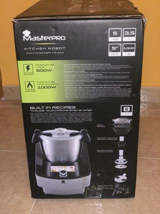 Robot de cocina Masterpro Multicooker Max Touch con pantalla táctil, Nuevo. Somos tienda fisica, damos 2 años de garantia. - Potencia de 1400W. - 31 funciones. - Pantalla táctil a color de 10. - Más de 500 recetas integradas. - Capacidad de 4,8L (3L).