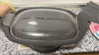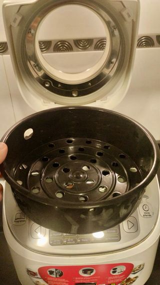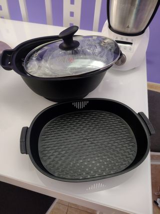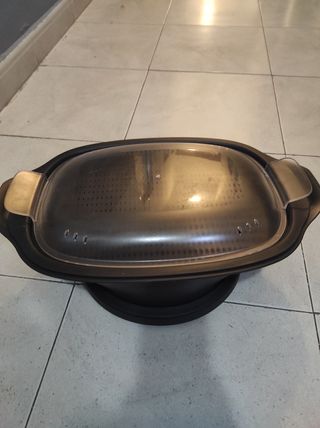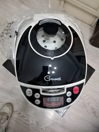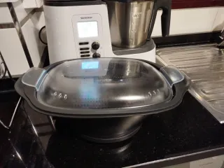 Robot de cocina para horneados, al vapor, estofados, fritos y un largo etc, con inicio programable y funcion mantener caliente por 24H. Bol esferico que ofrece una coccion optima y homogenea. De regalo acessorio cesta de vapor y vaso medidor.Incluye libro de recetas original. Si deseas mas info por privado. Usado solo 2 veces.