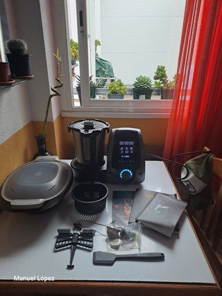 Se vende robot de cocina completamente nuevo a estrenar. tiene todos los plásticos sin quitar , absolutamente nuevo. Se vende porque es un regalo y no se va a usar, ya que tenemos otro robot. Tiene aplicacion para el movil, 9 programas automaticos, es de gran capacidad. Cocina, asa, tiene grill, función horno y paredes antiadherentes. Viene con accesorios y manual de instrucciones. Precio negociable si se viene a recoger o se hace envio