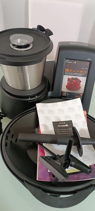 Taurus Mycook Touch Unlimited Edition. Sin usar. Totalmente nueva. Diseñada y fabricada en España Conexión Wi-Fi integrada APP Mycook integrada en el robot de cocina y disponible para otros dispositivos móviles (Playstore y Appstore) Más de 20.000 recetas gratis en constante crecimiento en el Club Mycook Recetas con información nutricional, lista de la compra, planificador semanal, valoraciones y comentarios... Actualizaciones periódicas del software 2 modos de cocción: manual y guiada Interfaz intuitiva y fácil de usar Pantalla táctil de 7 pulgadas Jarra de acero inoxidable de 2L Cuchillas de acero inoxidable Inducción hasta 140ºC
