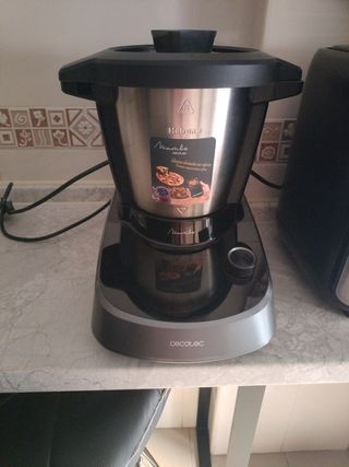 Robot de cocina Cecotec Mambo en color plateado y negro. Ideal para preparar una gran variedad de recetas. - Diseño moderno y funcional. - Acabado en acero inoxidable. -Incluye dos jarras una cerámica y otra de acero inoxidable. -Tres, cuatro usos. -Todos los accesorios en prefecto estado, a mí me costó 400 euros. -vendo por no poder usar porque somos una familia numerosa y la jarra es de 3 litros y no me sirve para tantos comensales. - Recetario de cocina.