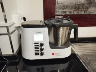 Robot de cocina poco uso ya que en casa somos mucho y es para 3/4 personas. completa con accesorios y libro de recetas y manual. es el modelo que lleva báscula
