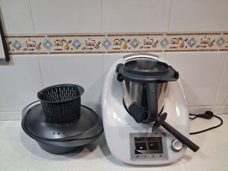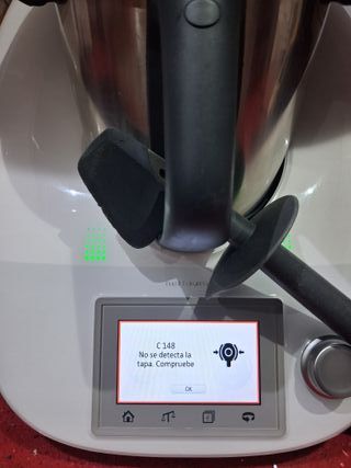 Se vende robot de cocina Thermomix TM5 con error C148 por el cual el sensor no detecta la tapa. Muy cuidada, el motor funciona perfectamentey la bascula es bastante precisa. Incluye base, vaso, tapa, cestillo, cubilete, cuchillas, mariposa, varoma y bandeja varoma. Vendo porque quiero comprar el nuevo modelo. - Modelo: TM5 - Presenta error C148.