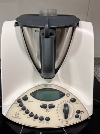Robot de cocina Thermomix TM31 de Vorwerk. Un ayudante versátil para tu cocina. - Modelo: TM31 - Marca: Vorwerk - Incluye accesorios. Incluye 6 libros de cocina. Es el modelo antiguo pero está en perfecto estado. Cuchillas limpias y vaso brillante. El lateral de la máquina está algo abombado pero solo es el plástico exterior. La máquina está en perfectas condiciones. Entrega en mano en San Sebastián de los Reyes