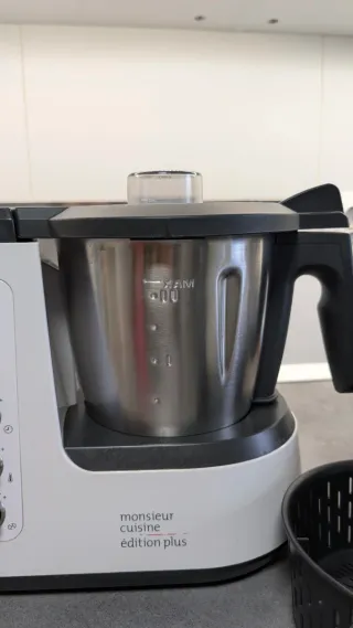 Robot de cocina Monsieur Cuisine Edition Plus de Lidl. Incluye muchos accesorios para facilitar la preparación de tus comidas. - Jarra de acero inoxidable. - Cuchilla. - Varoma con bandeja intermedia. - Cesta. - Mariposa. Robot de cocina ideal para empezar a hacer recetas. Funciona y está en buen uso, aún tiene vida por delante. #robotdecocina #thermomix #lidl #robot #cocina #cecotec #tm5