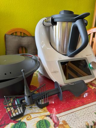Vendo robot de cocina multifuncional. Sirve tanto para pastelería como para múltiples funciones habituales en la cocina. Es picadora, exprimidor de naranjas, batidora de vaso, pica carne, licúa y además levanta claras, amasa e infinidad de cosas… Sólo se ha usado una vez, fue un regalo. Tiene todos sus accesorios. #thermomix.