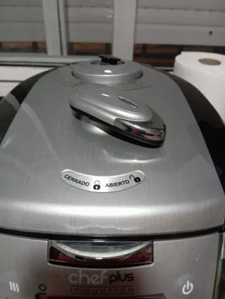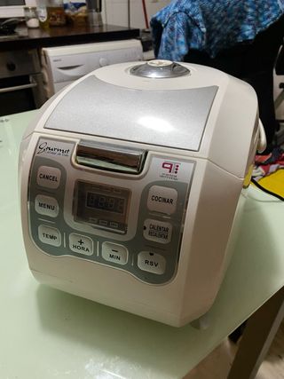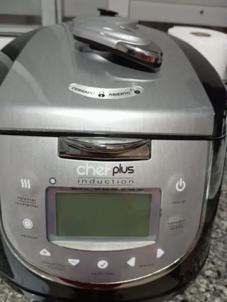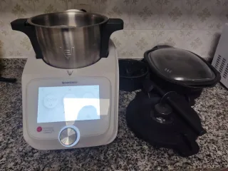 Robot de cocina multifunción Vendo robot de cocina multifunción en perfecto funcionamiento. Características: Vaso de acero inoxidable con tapa. Varios niveles de temperatura (40ºC, 60ºC, 80ºC, 100ºC, 120ºC). Diferentes programas de cocinado y mezclado. Control con rueda y botones. Importante: el anclaje de la tapa NO funciona del todo bien, por lo que hay que cogerlo con la mano, ya que si se suelta, el aparato se detiene. Ideal para quien busque un robot económico y práctico para el día a dí