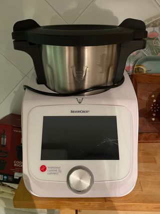 Robot de cocina SilverCrest Monsieur Cuisine Connect en buen estado. - Capacidad de 3L. - Peso máximo de 5kg. - Pantalla táctil de 7 pulgadas. - Conexión Wi-Fi. - Incluye Cooking Pilot. - Potencia de 1050W.