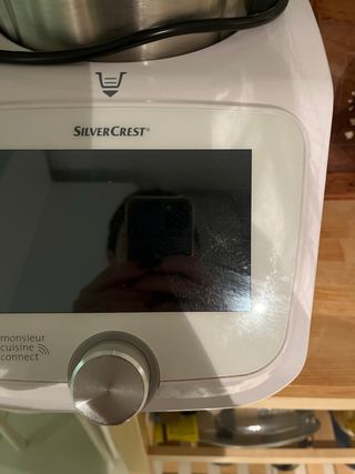 Robot de cocina Monsieur Cuisine Connect. Vendo famoso robot de cocina del Lidl. La pantalla sufrio un golpe y aunque se enciende y puedo poner la temperatura hay opciones de la pantalla tactil que no funcionan. Por lo que no se pone en marcha. Le falta también el vasito de arriba. Imagino que se puede arreglar la pantalla con el servicio técnico o las piezas se pueden reutilizar. Escucho ofertas - Pantalla táctil. - Incluye mando giratorio.