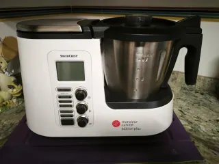 Robot de cocina Silvercrest Monsieur Cuisine Edition Plus en color blanco. Sin usar prácticamente. - Jarra de acero inoxidable. - Panel de control con pantalla LCD y botones. - Incluye accesorios, los cuales están sin usar. Solo la utilice para triturar unos purés...