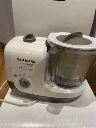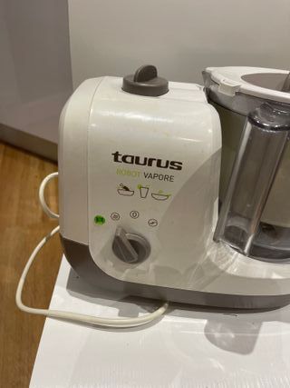Robot de cocina Taurus Robot Vapore en color blanco y gris. Ideal para preparar comidas al vapor. - Diseño compacto. - Panel de control con indicadores. - Jarra transparente.