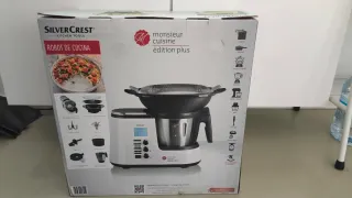 Robot de cocina Lidl SilverCrest Monsieur Cuisine con todos sus accesorios y libro de recetas. Características: - En su embalaje original. - Marca: SilverCrest. - Modelo: Monsieur Cuisine Edition Plus. - Incluye todos los accesorios originales. - Libro de cocina mensieur Cuisine de Silvercrest. Estado: Con pequeños signos de uso: -Tiene como unos rascazos en la base, “señalados con un circulo azul en las últimas 3 fotos” y el amasador de plástico “tipo mariposa” se me rompió “también señalado con un círculo en las fotos. Salvo por los detalles comentados el resto está en buen estado y funciona a la perfección.