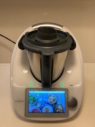 Robot de cocina Thermomix TM5 de Vorwerk. Diseño moderno y funcional. La vendo ya que me han regalado el modelo nuevo. 2 vasos, 2 cestillos y 2 espátulas(1cestillo y 1 espátula sin estrenar)con varoma y mochila de la marca. Tb tiene funda casera. - Color blanco. - Pantalla táctil. - Botón giratorio.