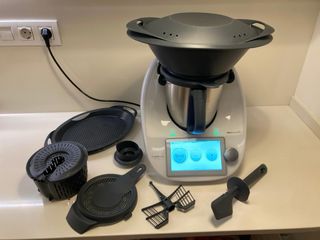 Robot de cocina programable. Estado: sólo se usó para la prueba. Con todos los accesorios y alguno a mayores q se le compró. Recetas y caja original.