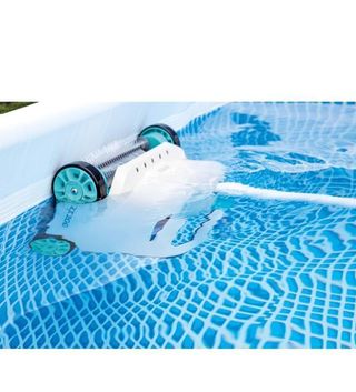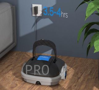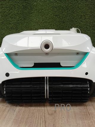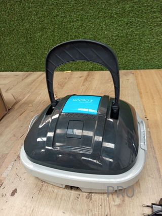 Robot aspirador para piscinas, diseñado para una limpieza eficiente. Su diseño moderno y compacto facilita su manejo. - Incluye batería. - Fabricado en plástico y goma.