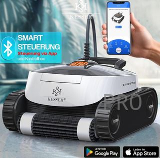 KESSER® Robot de Piscina para Piscinas enterradas y de Pared, hasta 100m², Totalmente Automático, Función App y Módulo de Control, Mecanismo de Trepado, Antracita/Blanco