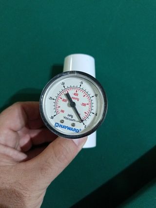 Manómetro para acoplar a la manguera del robot de piscina. Es de la marca HAYWARD, pero se puede acoplar a cualquier robot o limpiador para saber cómo de saturado está el filtro.