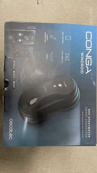 Robot limpiacristales Conga WinDroid 870 Connected. Se vende por no usar, todavía con las pegatinas. Se entrega completo, cargador, cuerda de seguridad, 10 balletas de recambio, mando a distancia. - Tecnología iTech Win 4.0 para navegación inteligente. - Detecta los límites de la ventana y limpia la superficie completamente.